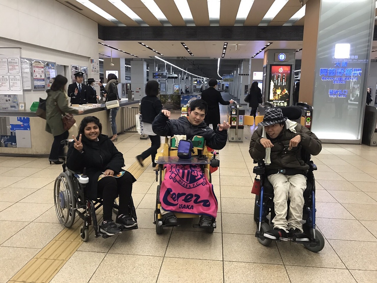 Members wer Fukunaga and Morizono, Kamey (+ two helper) was. Then I went to Q`s Mall by moving to the Abenobashi by Kintetsu train.