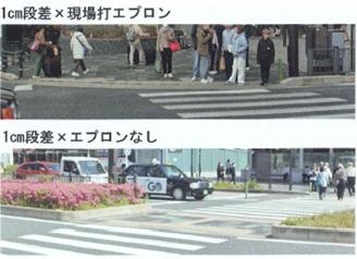 ・足裏で高低差を認識して、やっとわかる程度である(1㎝段差×現場打ちエプロン 白杖使用者)