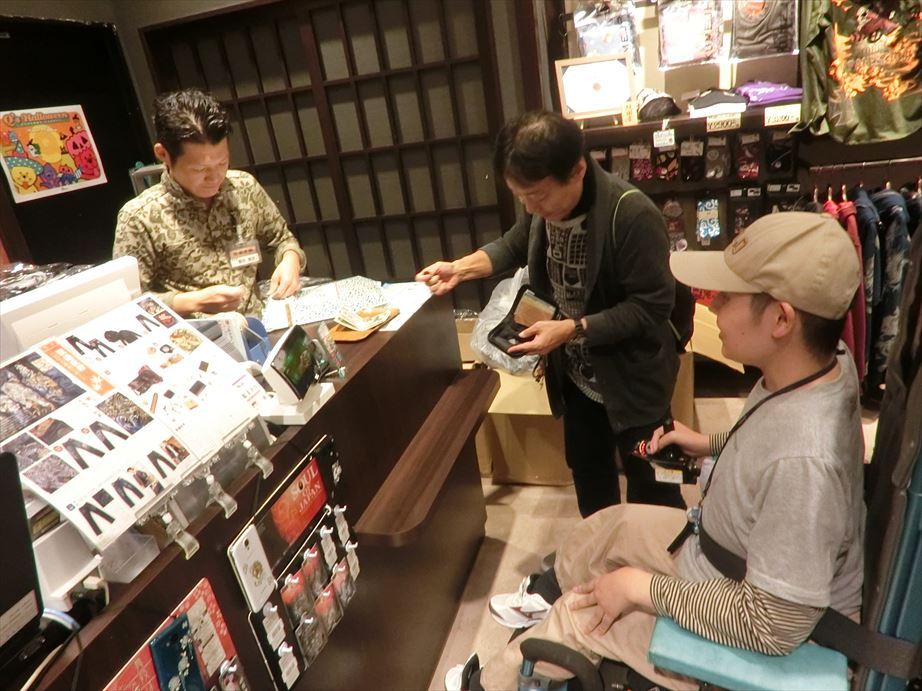 そして、私の好みに合う服屋さんを見つけてしまいました!和柄テイストの流儀圧搾(りゅうぎあっさく)です。店頭で「ど根性ガエル」プリントTシャツを発見!写真のように服を合わせてみると、主人公の気持ちに!思わずレジまで持っていってしまいました。さらに、今まで被らなかったタイプの縁ありの帽子を見つけましたが、私は自分で帽子をとってかぶれないので、店員さんに被せてもらいました。気に入ったので、再度レジまで持っていってもらいました。