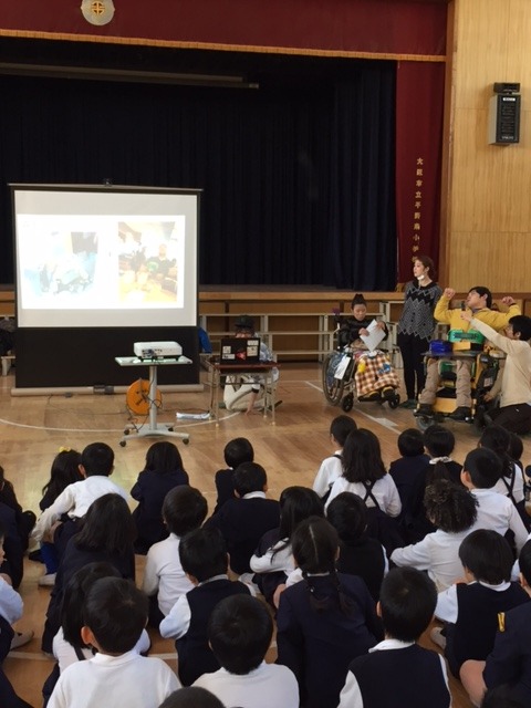 4時間目には音楽の授業を一緒に受けさせてもらい、1年生たちが元気いっぱいのお歌を聴かせてくださいました。“きらきらぼし”と“手のひらをたいように(なんと手話歌!!)”とても上手でたくさんの元気をいただきました。
