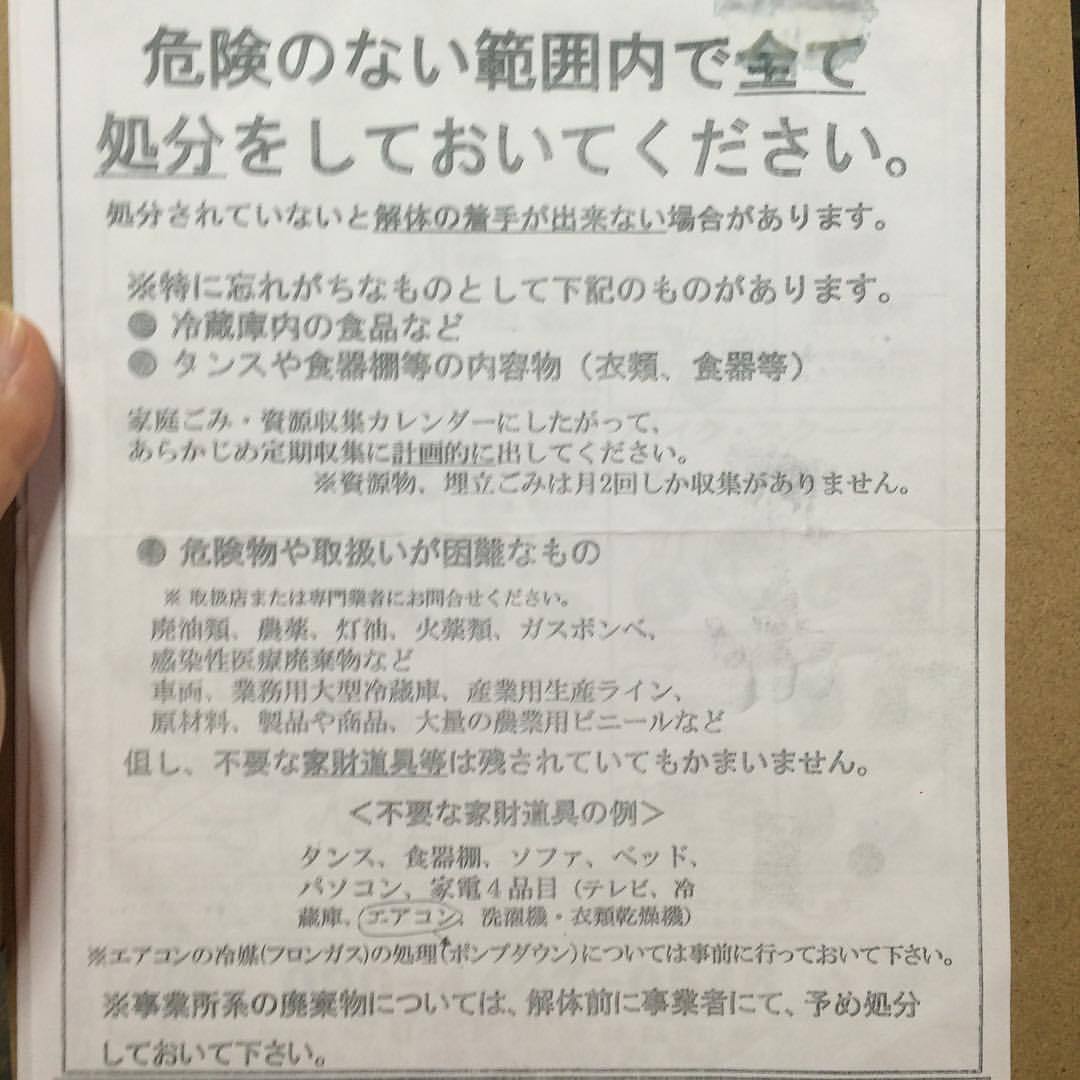 解体に向けての案内を依頼者に見せていただきました。