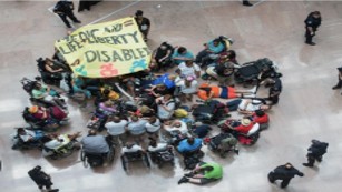 ナショナル・アダプトというのは、障害者の権利とコミュニティで暮らす自立と自由を守るための全米の草の根団体です。デモや選挙、座り込みなどの非暴力・直接行動で制度差別に対して立ち向かってきました。