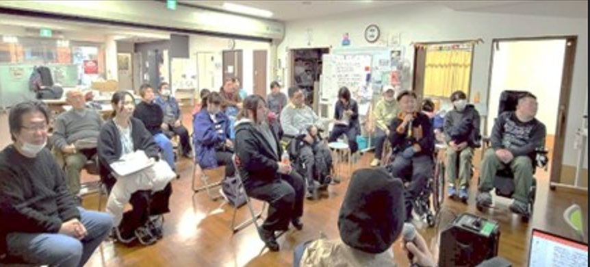 被災を通じて繋がった阿部さんの障害から被災、避難などの実体験を直に聞く交流ができ、また参加者各々に震災等にまつわる体験があることも共有できました。ちゅうぶでは繰り返し満遍なく障害者・スタッフに参加してもらい、日々の自分と仲間たちの防災を考える機会としています。ぜひ皆さんも我が身と仲間の命の備えをお願いします。